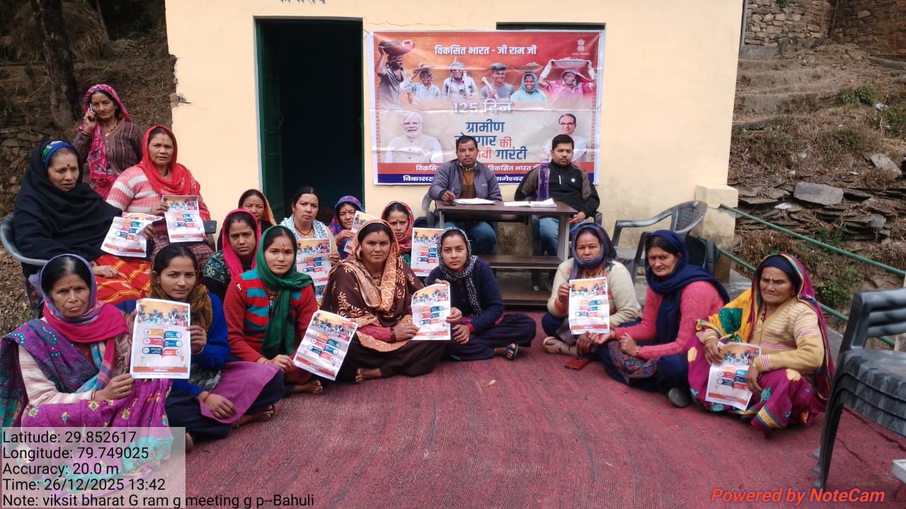 भारत सरकार द्वारा लागू भारत–ग्रामीण गारंटी फॉर रोजगार एवं आजीविका मिशन (ग्रामीण) अर्थात VB-G RAM G अधिनियम-2025 के प्रावधानों के प्रभावी प्रचार-प्रसार हेतु शासन के निर्देशानुसार जनपद बागेश्वर की समस्त ग्राम पंचायतों में जन-जागरूकता बैठकों का आयोजन किया गया।